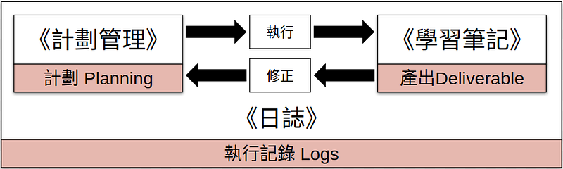 - 《日誌》(執行紀錄 Logs) :依照 PDCA 按日紀錄整個計畫過程發生的事情,打開這一頁,就會記憶起計畫過程,幫助你見林而不是糾結在細節。