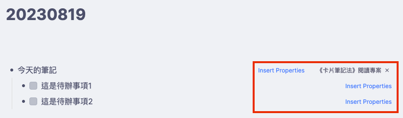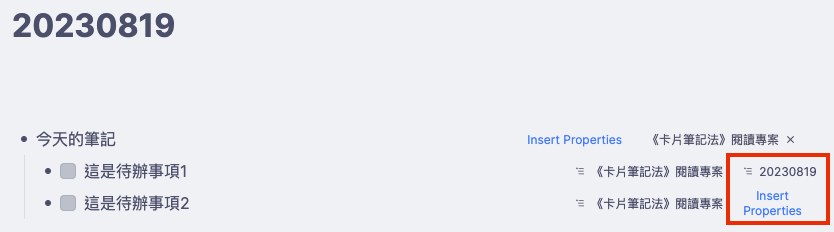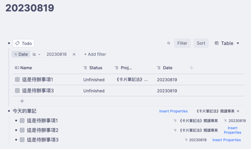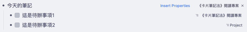 - 因為 Today’s Note 原本就是 RemNote 設計來收集與當日有關的所有筆記的地方,所以你不用插入筆記的表格了,只要把當日的 Todo 拉進來就是「知行混合體」了。