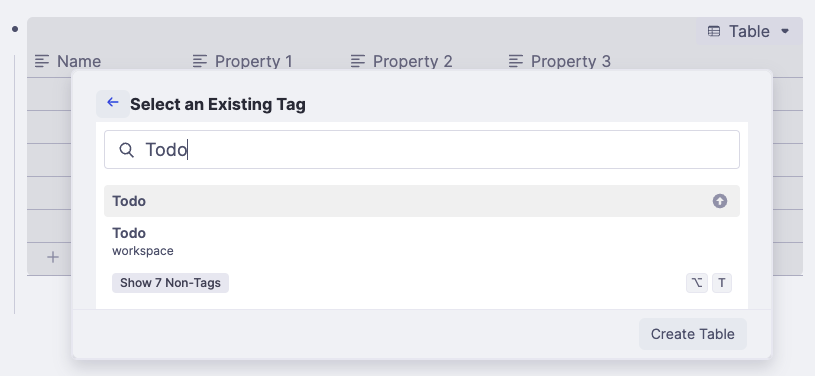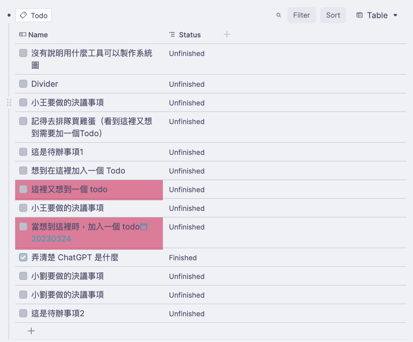 - 插入一個 Table,選擇 Todo 這個標籤