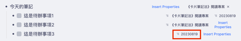 - 別擔心,RemNote 有想到,試試看再新增一個 Todo,只要在 Today’s Note 新增的,就會自動加上日期,很方便。