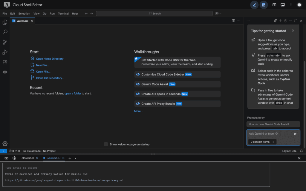 - A | 在雲端終端機中,啟動 Gemini 助理: